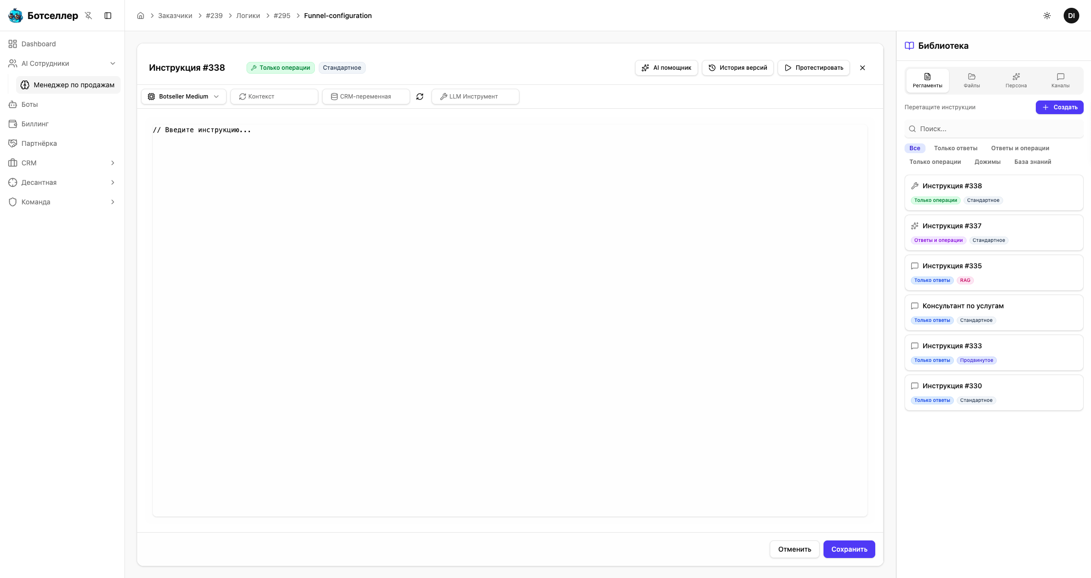 Какие типы инструкций существуют в Botseller?