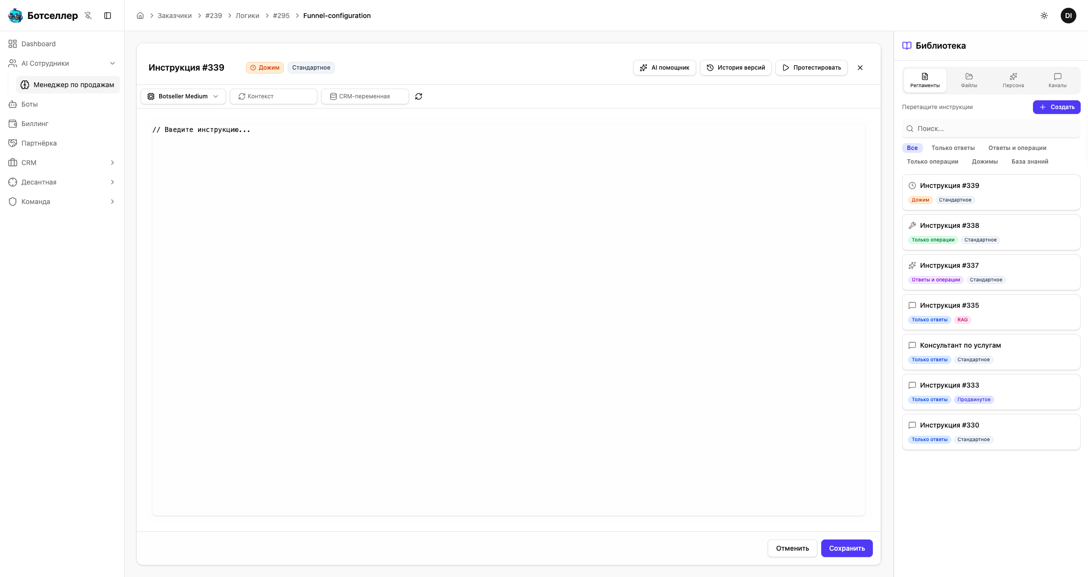 → «Для Дожимов»Тип инструкции нельзя изменить после создания. Если вам нужен другой набор функций — создайте новую инструкцию.