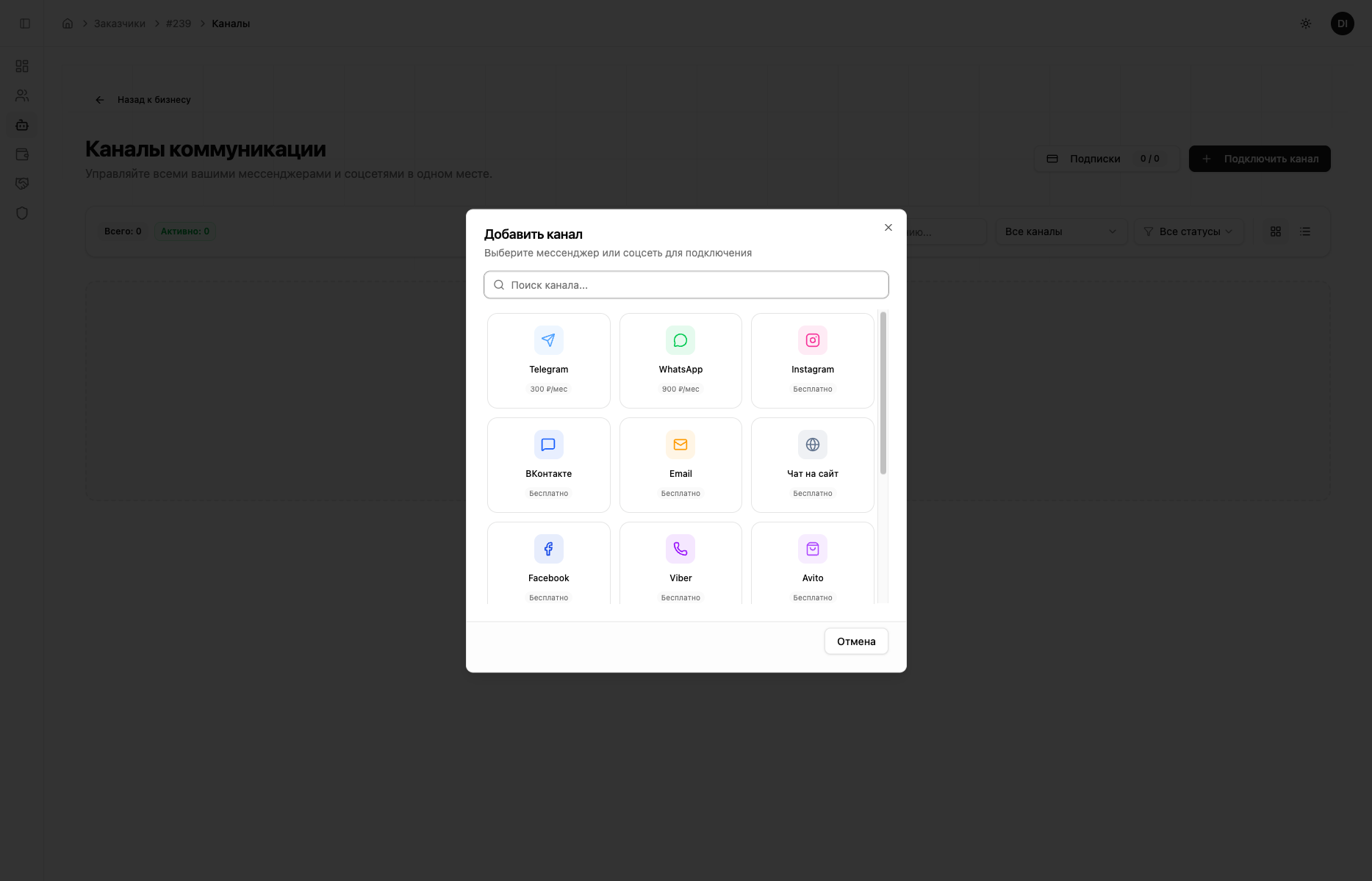Да. Каждый аккаунт — это отдельный канал со своей подпиской. Все каналы управляются из единой панели. Каждый канал можно привязать к разным ИИ-сотрудникам.