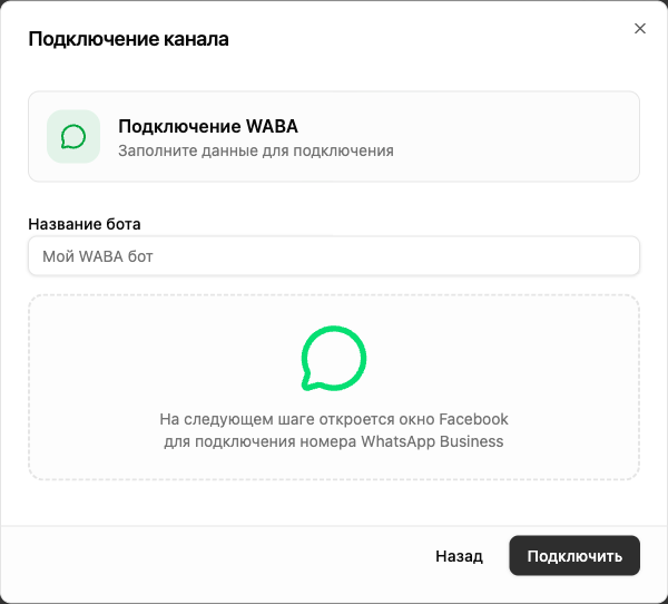 Подключение WABA