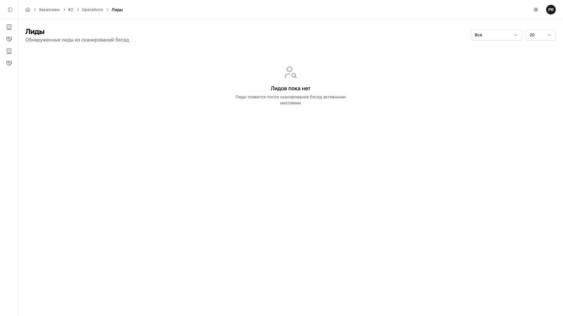 Лиды — конечная цель Нейрочатинга. Когда пользователь из группового чата пишет персоне в личные сообщения, система автоматически создаёт лид с полным контекстом: кто, откуда, какое действие привело к контакту. Менеджер получает тёплый лид, готовый к обработке.