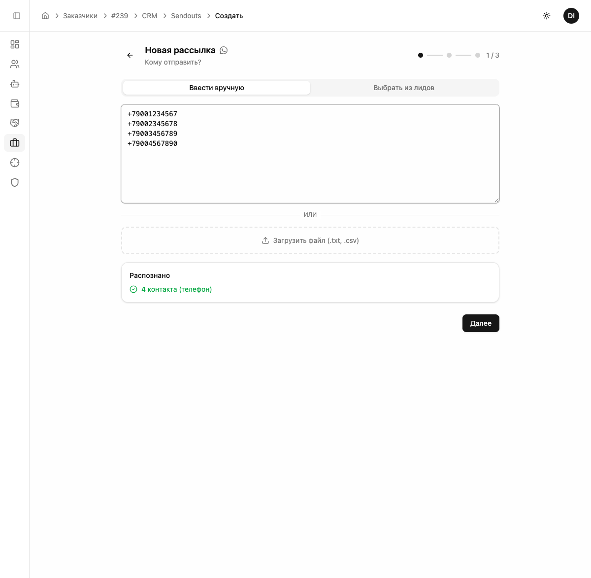 Процесс аналогичен Telegram-рассылке, но с учётом специфики WhatsApp.